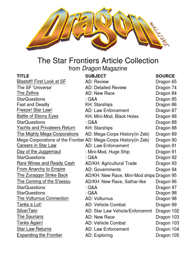 Star Frontiers Dragon Magazine Article Collection Pdf Black Hole Crime Violence
